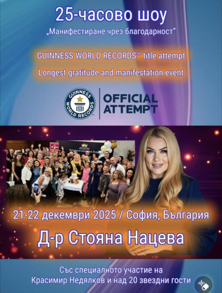 Това е първото по рода си шоу, което ще влезе в Guinness World Records с новата категория „Манифестиране чрез благодарност“. Като за първи път в историята, Гинес признава български формат, вдъхновен от нашата страна. Но това не е всичко!