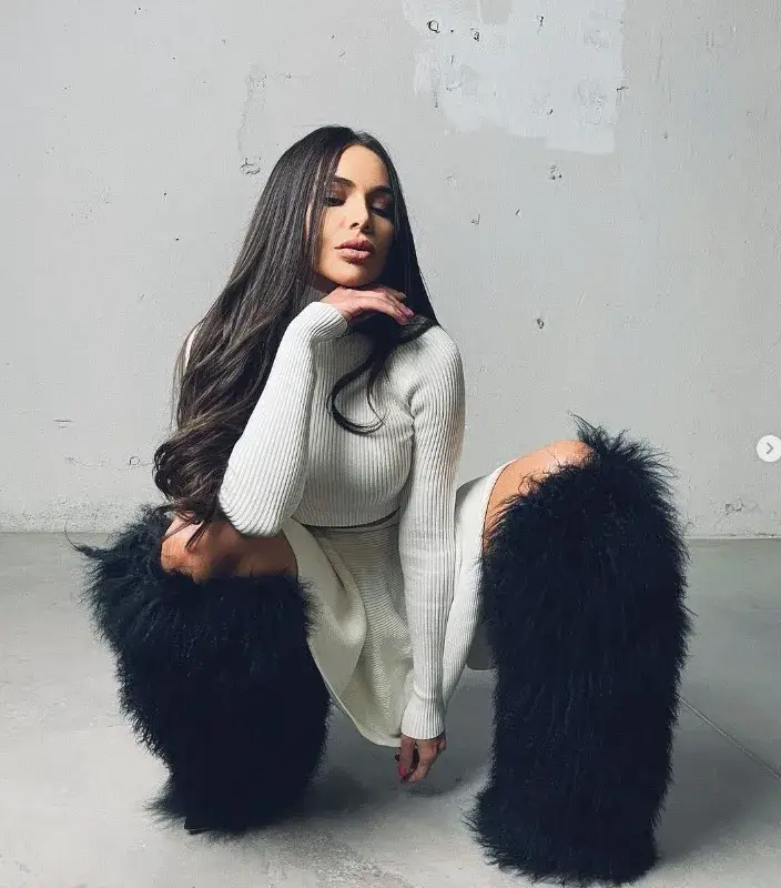 С огромни космати крака шокира феновете си Алисия. Попфолк певицата си направи модна фотосесия с огромни ботуши с косъм, по-големи от самата нея.