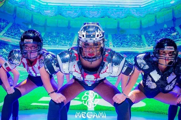 Балет Megami в сексапилни спортни униформи и мажоретки бяха част от уникалното шоу Touchdown, вдъхновено от най-популярния спорт в Щатите.
