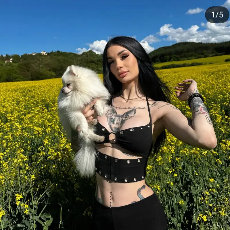 Татуираната брюнетка се показа в социалната мрежа как се мляска с малкото пале насред полето. Анджела е изключително привързана към малкото кутре и го мъкне навсякъде с нея. Е, вече е ясно, че се и целуват.