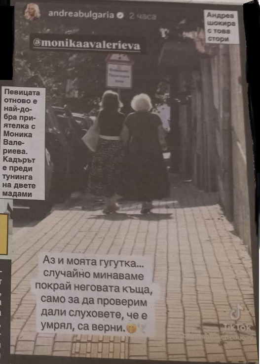 Андреа отново е в центъра на скандал, този път заради Кубрат Пулев. Фолк певицата качи видео, в което е тагнала Моника Валериева, а текстът гласи: "Аз и моята гугутка... случайно минаваме покрай неговата къща, само да проверим дали слуховете, че е умрял, са верни!" Това не е просто шега, а целенасочена провокация, която разгневи много потребители.