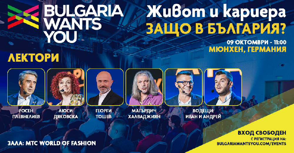 „Няма да излъжа ако кажа, че истински се вълнувам за предстоящото събитие на Bulgaria wants you в Мюнхен. На 9 октомври ще се сбъдне една наша отдавнашна мечта, а именно да отидем при българите в чужбина. След няколко години на Световна пандемия, дойде моментът, в който ще се срещнем на живо с българските емигранти. Това е само първото от поредица планирани събития в Европа. Те имат за цел да представят пред българска общност зад граница конкретни предложения за работа в България. На събитието „Живот и кариера – защо в България?“ ще има работодателски щандове, ще има мотивиращи лектори и най-важното – всички гости ще имат възможност да видят, че България се променя.“ –споделя Андрей Арнаудов.