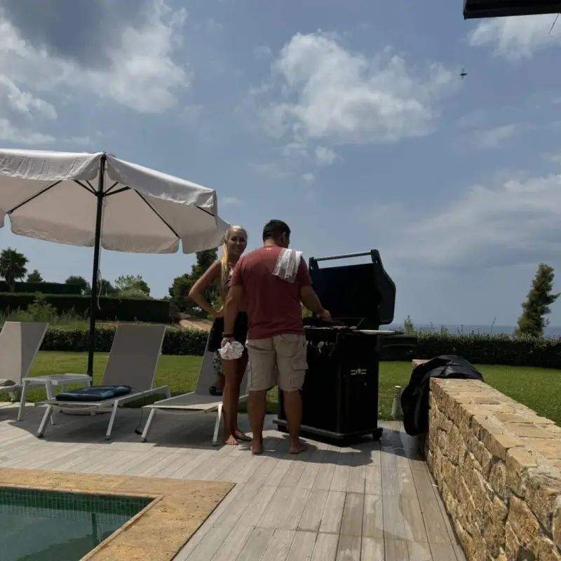 "Какво по-хубаво от сутрешен плаж, последван от барбекю у дома? Това е нашата лятна дневна рутина!", написа дългокраката юристка под пост в социалните мрежи, на който показва, как тя и съпругът й се суетят около пържолите в очакване те да се изпекат, пише България Днес.