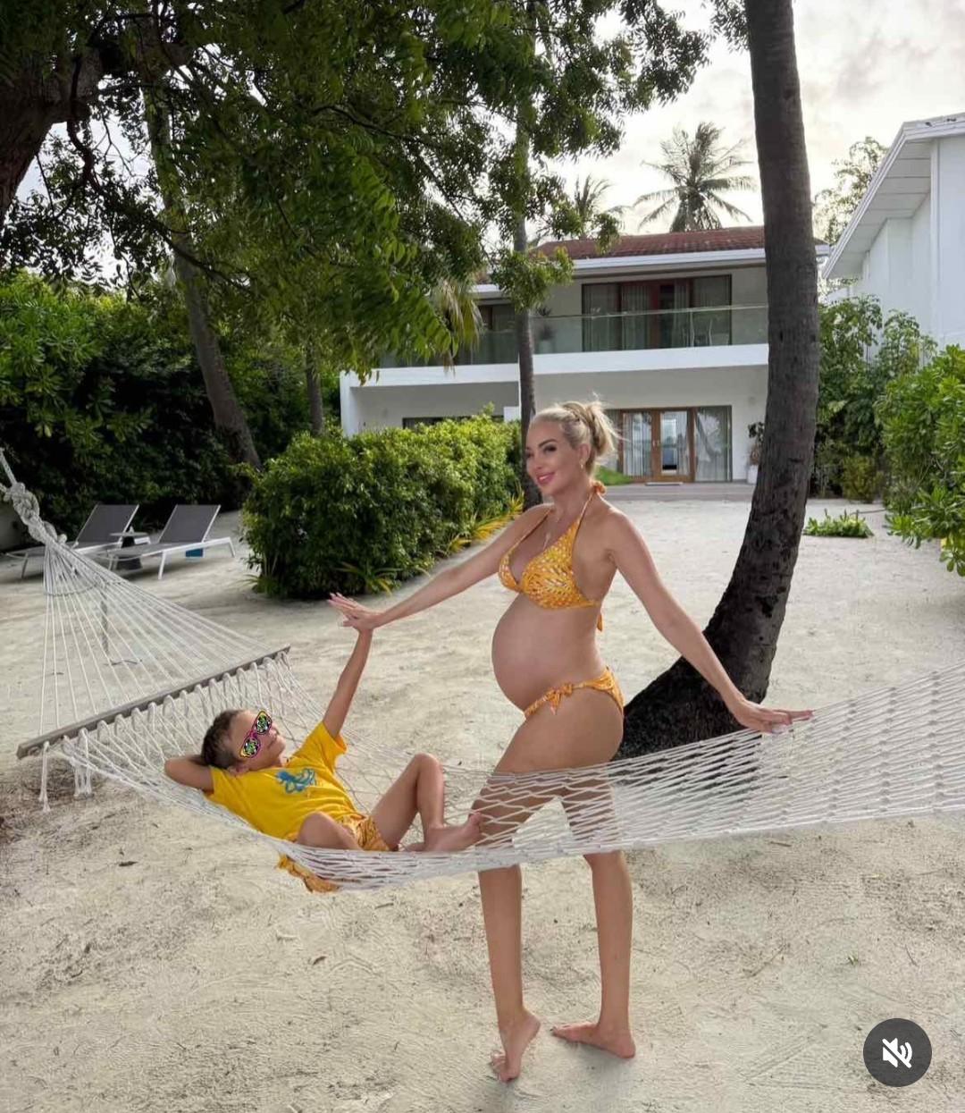 Бившата миска, която скоро ще роди третата си рожба, се наслаждава на живота в огромна вила на частния остров Курумба в Малдивите, където се намира приказната Орхидеева гора.