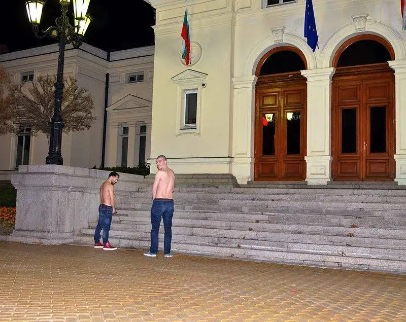 Ето какво написаха: „Държавата ни става от зле, по-зле. Икономика - на тъмно, корупцията - на светло, но няма осъдени? Гласувахме за референдума-няма референдум. Правихме протести-глас в пустиня. В правителството - нов бардак със стари к*рви. Дори църквата се е покрила и не е активна страна в обществото, напълни се и там с дупедавци. До там стигнаха, че цензурираха и „Шоуто на Слави“. Какво остава за нас? А най-интересното е, че снимахме безпрепятствено пред погледите на апатични служители на реда и случайни минувачи?! Тези снимки са нашият протест срещу всички неработещи институции! #ДаВиПикамНаИнституциите“.