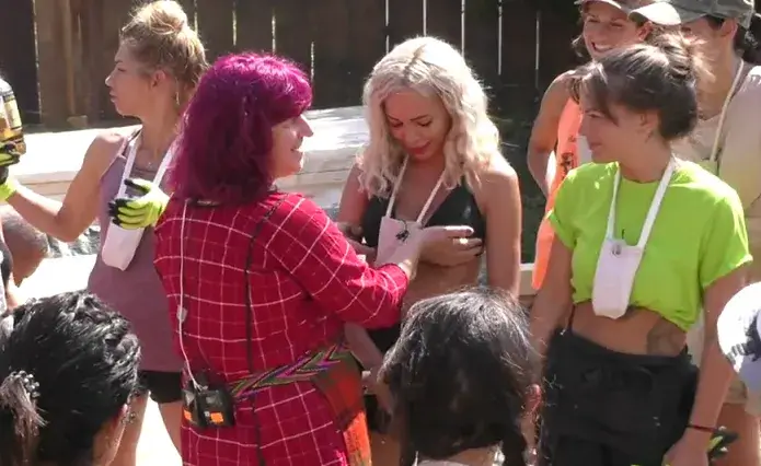 С влизането си в стопанството, колоритната, пременена в народна носия Дешка от село Горно Драгалище се насочи право към русокосата секс бомба Жанета Осипова. Възрастната жена извади подарък за участниците в шоуто - бутилка с домашна ракия, носеща името „боскаруша“.