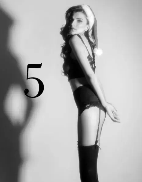 Еротичната провокация е от нейния коледен календар - всеки ден тя пуска по различна снимка и така до Коледа. На черно-белия кадър тя е с палаво бельо и коледна шапка, пише България днес.