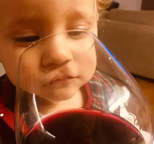 45-годишната звезда не прави забележки на мъжа си, когато той предлага вино или шампанско на 8-месечния им син. Малкият Адриан вече прави първи стъпки в банкетната култура, както се шегува татко му.