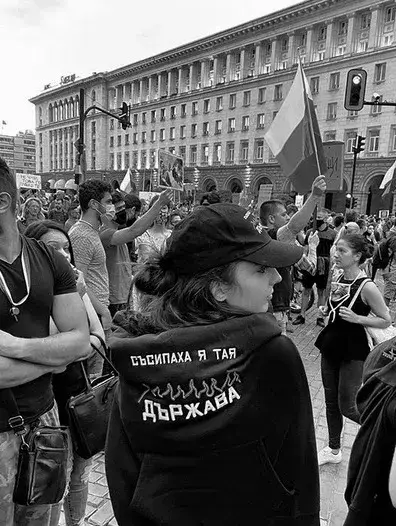 Тя отива в „триъгълника на властта“ и дефилира със суитчър и шапка с надписа. Находчивостта й не остава незабелязана. От снимките е видно, че доста от протестиращите срещу правителството плакнат очи в дрехите на модистката. Някой от тях вече са си поръчали от актуалните към момента суитчъри и шапки. Проверка на „България Днес“ в интернет показва, че цената на суитчъра се движи между 50 и 150 евро, а шапките струват около 20 евро.