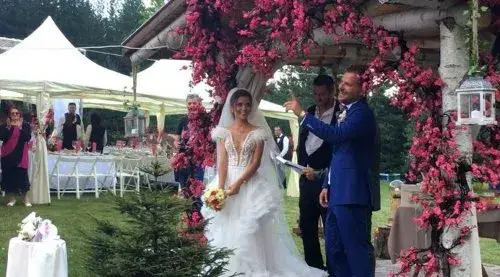 Племенникът на известната естрадна певица Богдана Карадочева – актьорът Калоян Карадочев и приятелката му Камелия Евгениева, която работи като преводачка, се ожениха на зрелищна изнесена церемония в Годеч, научи HotArena.