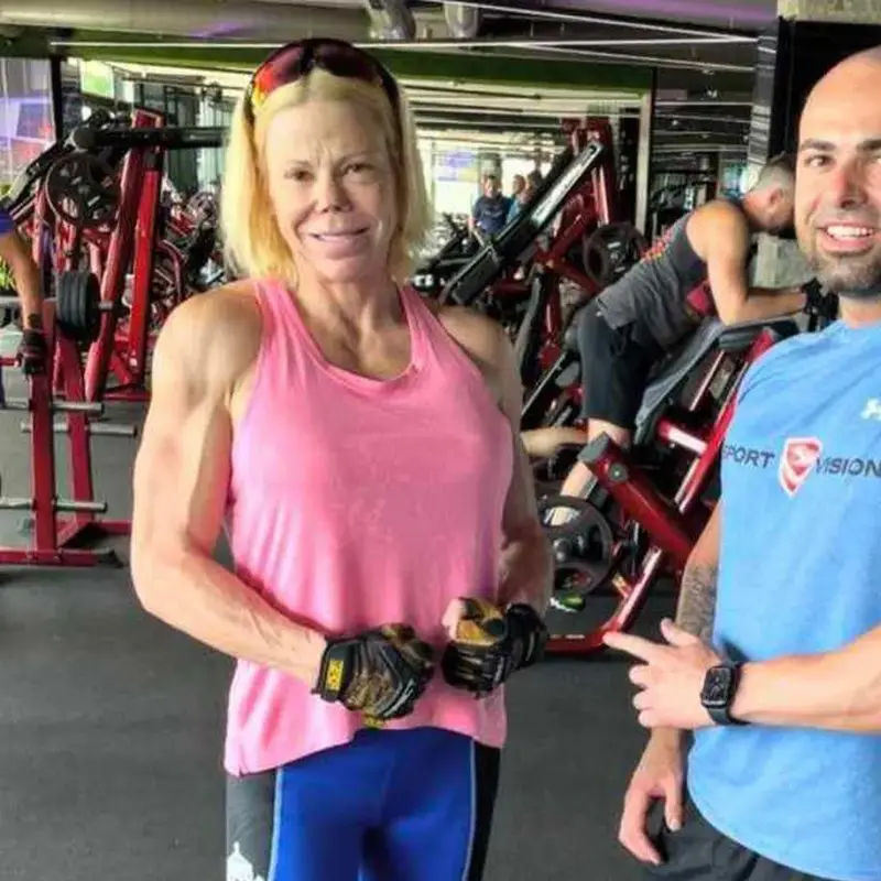 Треньорът публикува и обща снимка с княгинята, на която тя е по изрязан розов потник, а огромните ѝ бицепси изпъкват.