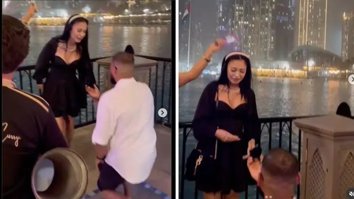 Половинката й Марин пада на коляно пред внушителния Бурдж Халифа. Стефи е истински очарована от предложението и без колебание казва "да" на бащата на бъдещото им дете.