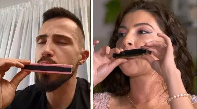 Тя бе провокирана от негово кратко видео, в което свири на хармоника, пожелавайки спокойна вечер на последователите си.