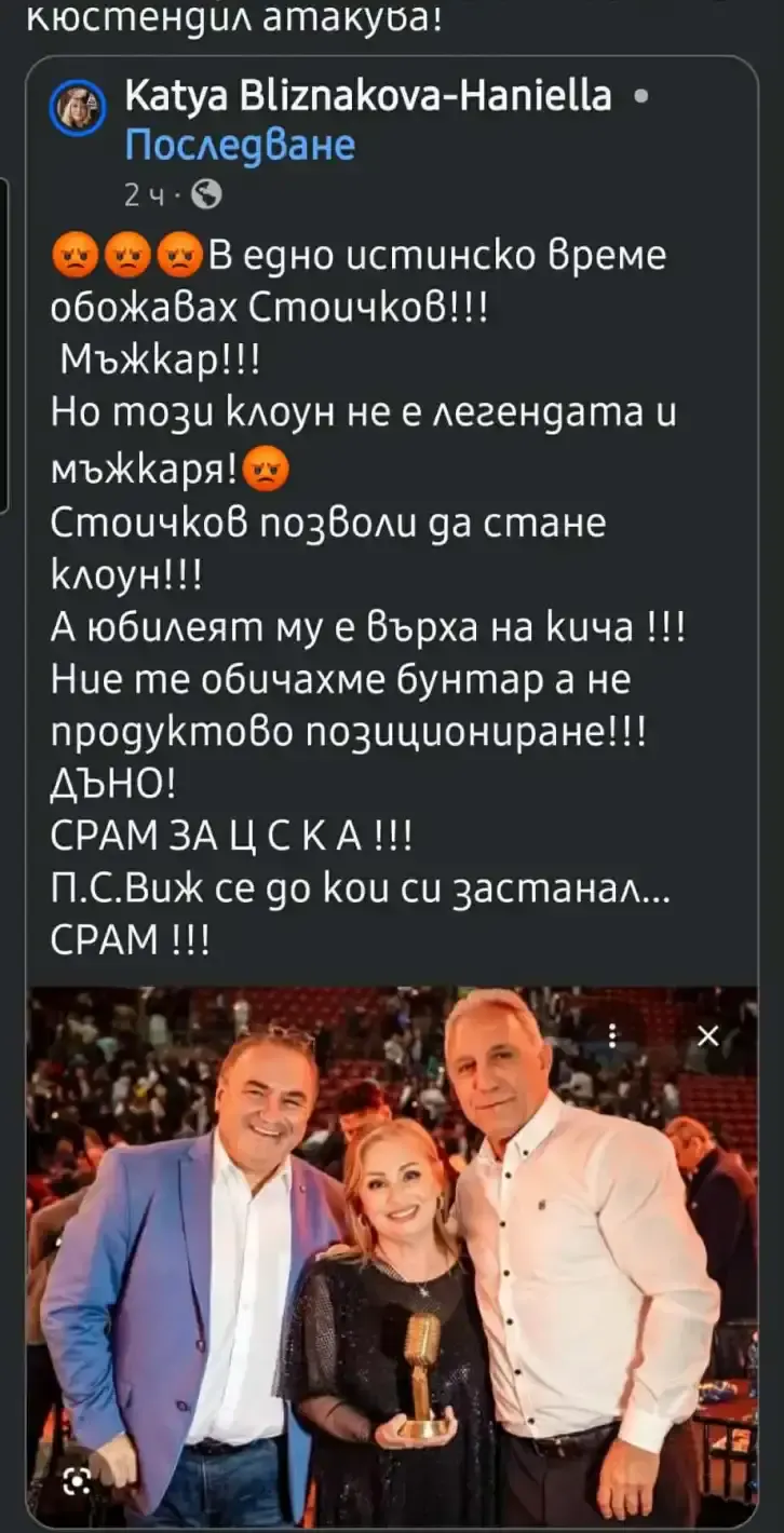 След партито, Катя не успя да сдържи гнева си и нападна Тони с остри думи в социалните мрежи. „Ти беше ли на юбилея му, че не те видях? Качвам това тук, защото знам, че по-късно ще го изтриеш!“, написа Катя, предизвиквайки бурни реакции от феновете.