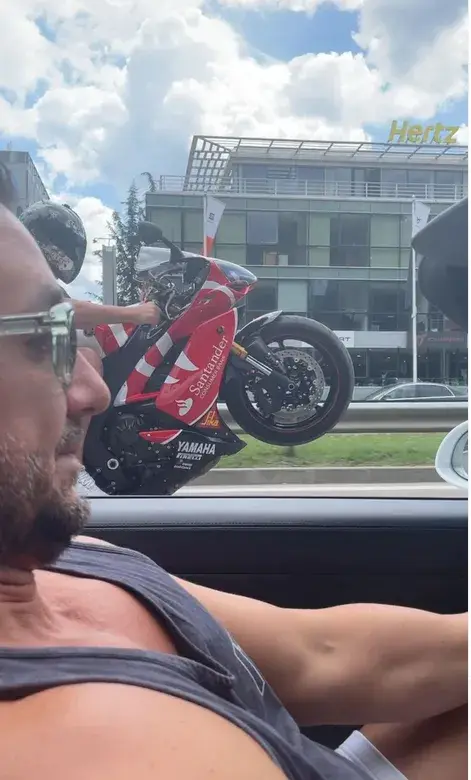 Константин създаде опасност на пътя, състезавайки се с мотоциклетист на столичен булевард. Певецът така пришпори „Порше”-то си, че в един момент направо залепна за седалката, вижда се в клипчето, което сподели в инстаграм.