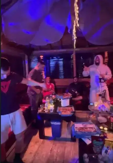 Благо не залага на стилен тоалет на партито. Облечен с широка тениска и дънки, Джизъса и компания куфеят по малките часове на деня. Георгиев и аверите му си казват наздраве с вносна маркова водка. А купонът се нагорещява след няколко питиета. Музиката се увеличава, гостите са в още по-добро настроение. И в един момент Джизъса се качва на сепарето и започва да припява парчето, което ехти от уредбата.