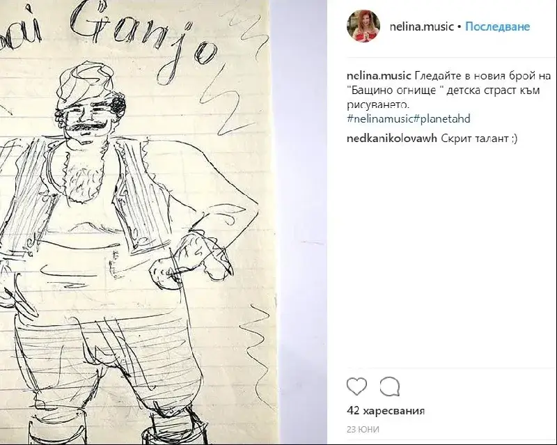 Фолк певица се вдъхновява да рисува герои от романи, повести и новели. Бай Ганьо, Винету, Индиана Джоунс и десетки други намират място в скицниците на Нелина, научи HotArena.