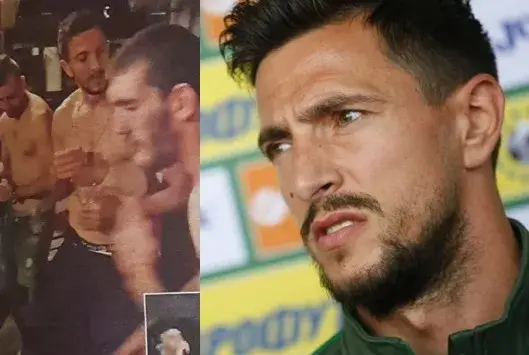 В понеделник вечерта той събрал съотборниците си в столична кръчма, където за отрицателно време изпразнили няколко бутилки алкохол. Вестник „Галерия“ разполага и със скандални снимки от партито, на които се вижда как таткото върти кючеци гол и с чаша в ръка. Чупки в кръста до него прави вратарят на „червените“ Георги Китанов.