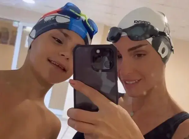 Златка Димитрова тръгна на плуване заедно със сина си.