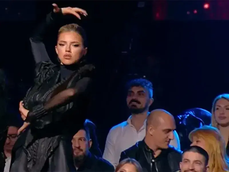 Поп певицата Дара прави акробатични номера на сцена! Изпълнителката прави виртуозни танци с нейните партньори хореографи, докато пее своите хитове - прави шпагати във въздуха и върти дългите си крака като хеликоптер.