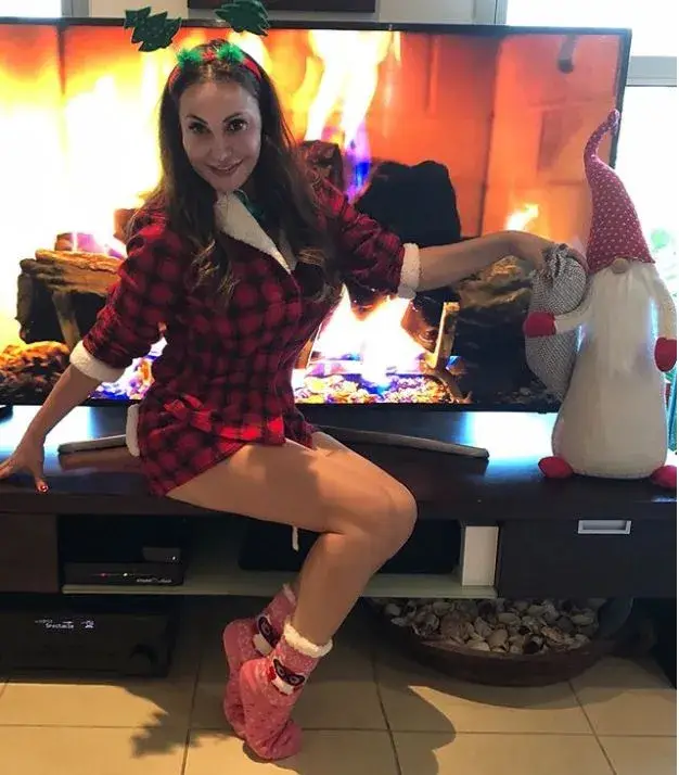 Дарина не пропусна да си направи празнична домашна фотосесия, заедно със сина и дъщеря си. И въпреки че в коледния дом на бизнесдамата грее слънце и е доста топло, тя все пак успя да си направи снимка пред виртуална камина с горящи дърва.