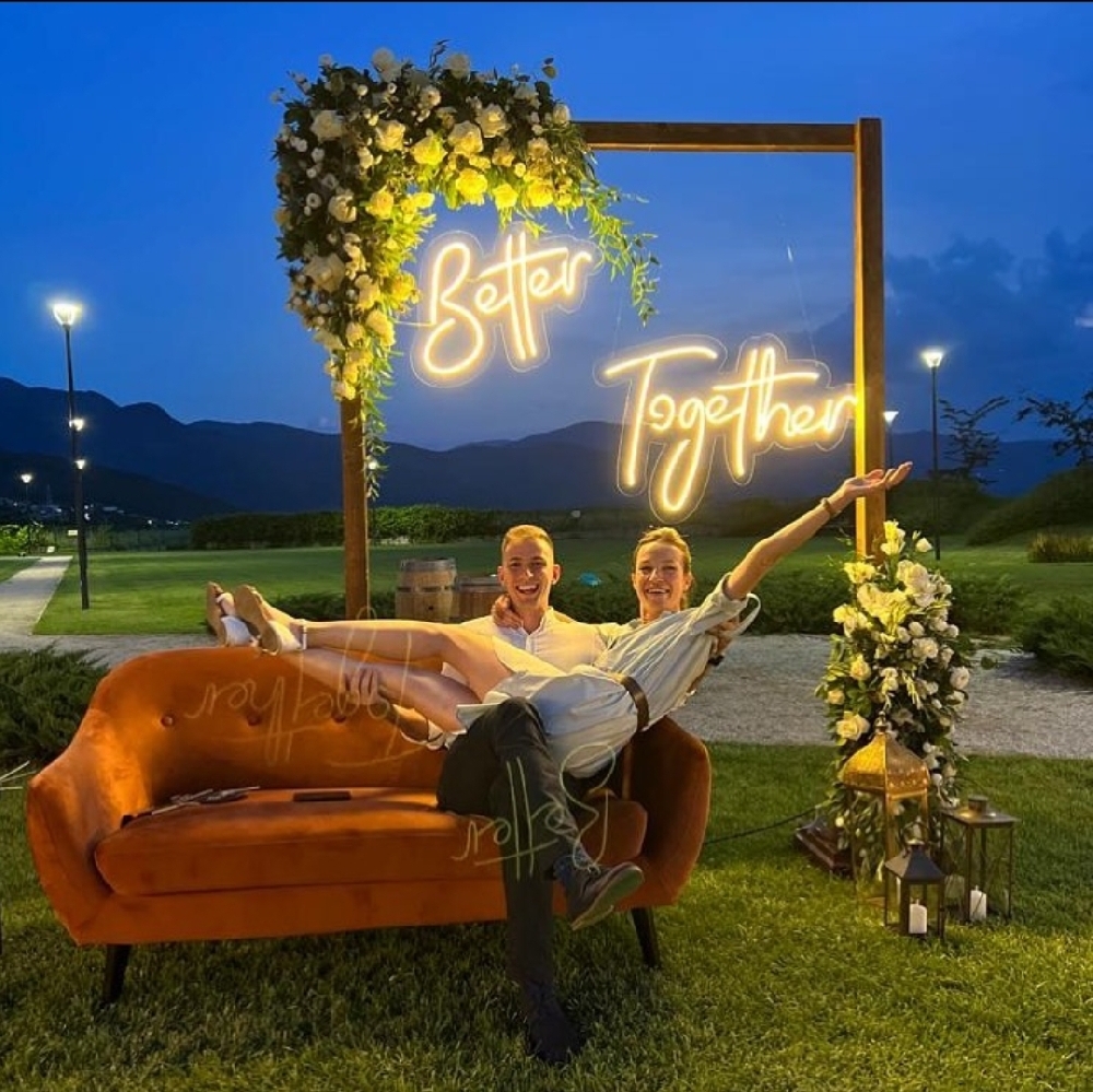 Двамата се запознават преди около 5 години тук на морето. Тя описва този ден като изживяване, което никога няма да забрави, а него като „романтичен, готин и смел.“ По време на свое пътуване до островната държава Вануату, Антон предлага на Дария да стане негова законна половинка - отново на плажа. Тя от своя страна го изненадва с новината, че ще става татко. Четири години по-късно двамата сбъдват мечтата си да се врекат във вечна вярност.