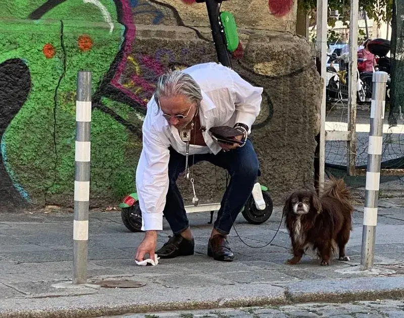 Като стопанин за пример, Денди изчака кучето му да се изходи на тротоара, но не заряза „материала” на улицата, както правят много други, а го събра в салфетка и го изхвърли в близкия контейнер за смет. После продължи разходката си из софийските улици в приповдигнато настроение.