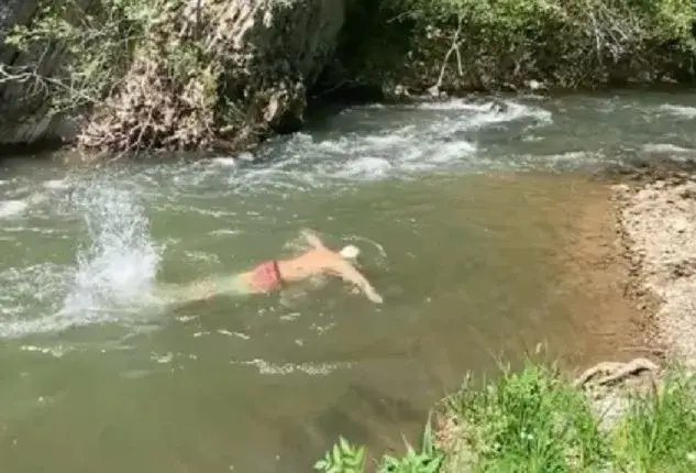 Блондинът показа в социалните мрежи как почти гол се просна в планински поток, докато децата му наблюдават какво прави, а малкият му син очевидно се тревожи дали таткото се чувства добре. Водещият на тотото топи не само тялото, но и лицето си в студената вода.