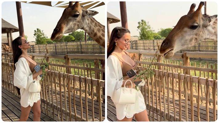 Поп-фолк сензацията Десита отново взриви социалните мрежи, но този път не с нов хит, а с невероятна сцена, която остави всички без дъх! Докато се наслаждава на ваканцията си в Дубай, певицата реши да направи нещо нестандартно – да нахрани жираф в сафари парка.
