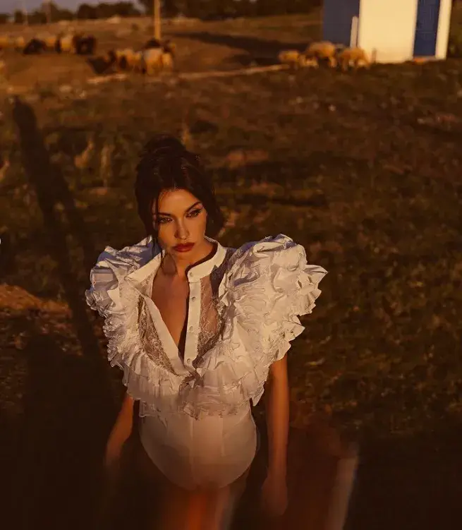 Синеоката красавица позира боса пред езеро или язовир за фотосесия, като на някои от кадрите на заден план се виждат овце и електрически стълбове. Странните кадри идват броени дни след друга странна случка с бившата половинка Асен Блатечки, който направи гаф, като честити рождения ден на сина им месец по-рано.