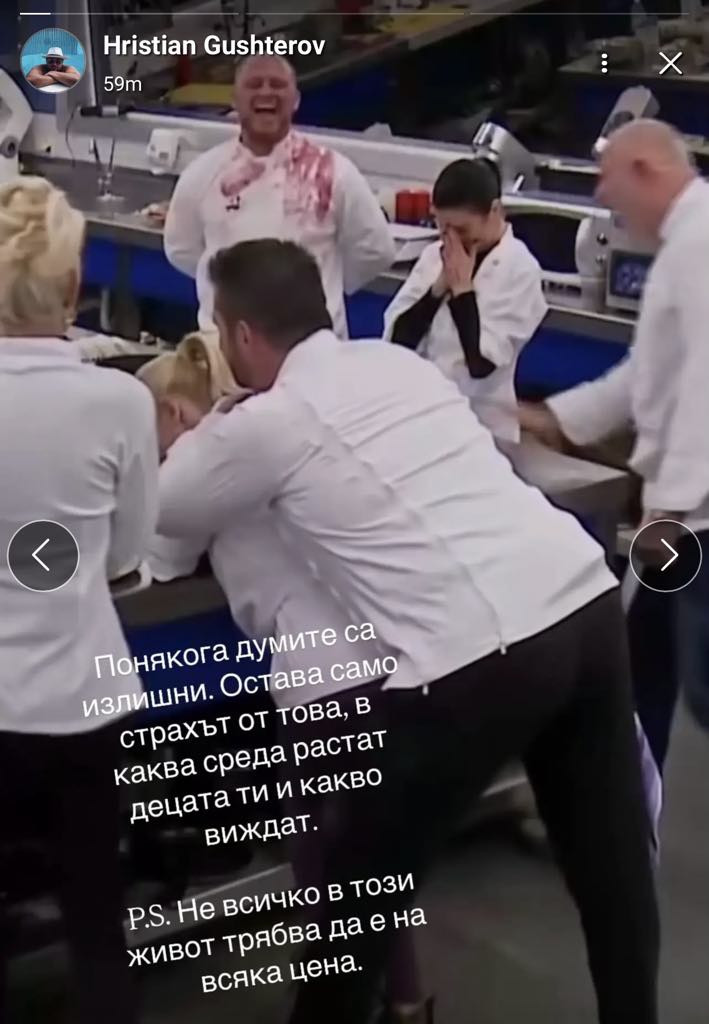 "Има случаи, в които думите са напълно излишни. Просто ти остава страха и ужаса да видиш в каква среда растат децата ти, какво е това, което виждат. Не всичко трябва да се прави в този живот и не на всяка цена", заяви Християн Гущеров, пускайки фотосите как Светлана се "напъва" с шеф Ангелов.