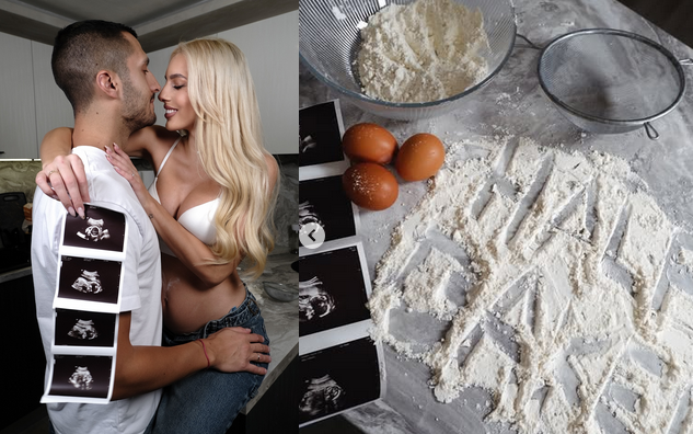 Двамата разкриха щастливата новина чрез нежна, домашна и същевременно закачлива фотосесия от собствената им кухня. На снимките Залия и Деян позират в ролята на двойка, която „готви“ нов живот. Между разсипаното брашно, дървените лопатки и купи с тесто вниманието веднага пада върху надписа „наполовина изпечено“, изписан на английски и оформен с брашно върху плота. Малка, но гениална шега, с която двамата намекват, че бебето е точно като хляб, който тепърва набъбва. На единия кадър Деян държи ултразвуковата снимка, а Залия сияе с първите очертания на коремче, което трепва дори през камерата.