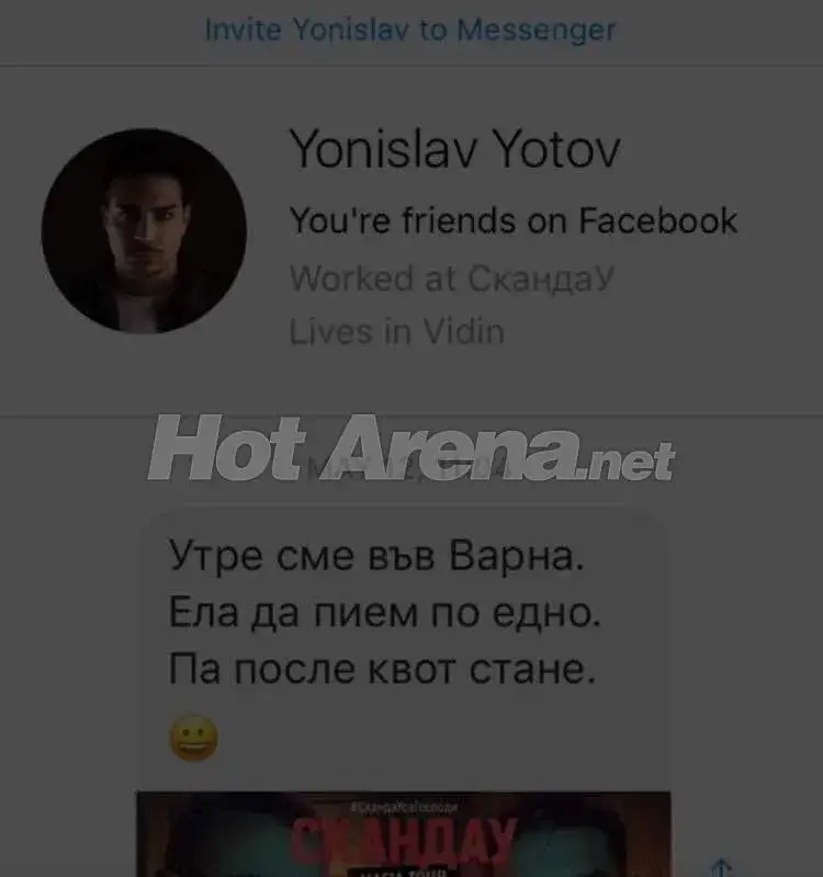 Наш читател ни изпрати скрийншот от чат на Тото, в който се вижда как музикантът си подготвя забавления за след концерт във Варна. „Утре сме във Варна. Ела да пием по едно. Па после квот стане“, пише палавникът.