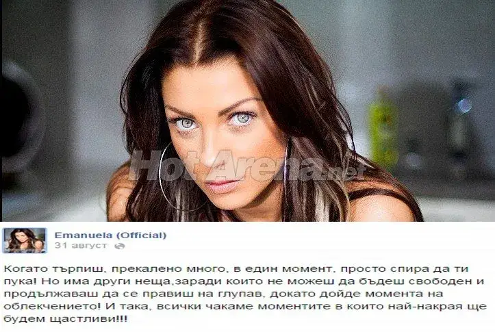 „Когато търпиш прекалено много, в един момент просто спира да ти пука! Но има други неща, заради които не можеш да бъдеш свободен и продължаваш да се правиш на глупав, докато дойде моментът на облекчението! И така, всички чакаме моментите, в които най-накрая ще бъдем щастливи!!!“, избухна Емануела в социалната мрежа.