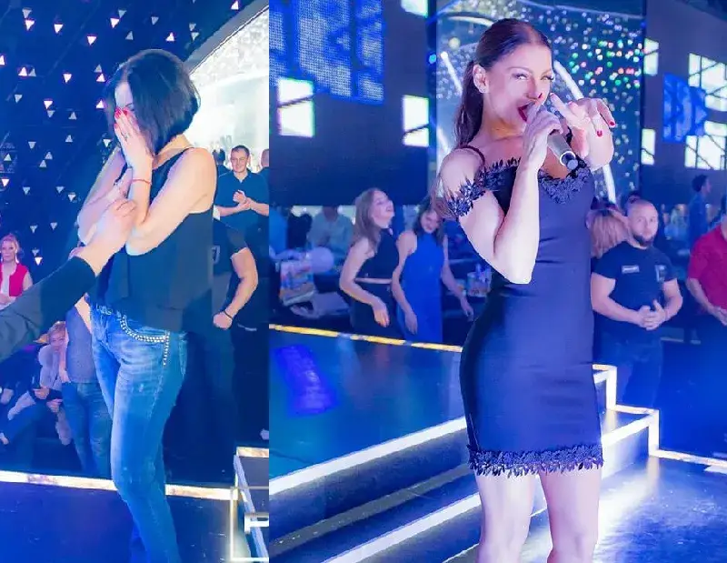 Младежът коленичи и поиска ръката на избраницата си.Емануела и цялата препълнена дискотека окуражиха влюбените с бурни аплодисменти. След като се чу заветното „Да“, заведението избухна във викове „Горчиво“, а певицата поздрави бъдещите младоженци с любимата им песен.