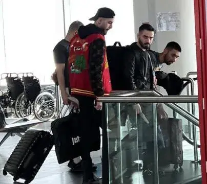 Певецът бе в компания на петима младежи и се опитваше по всякакъв начин да не се набива на очи на околните, макар че стърчеше с цяла глава над всички останали и само той беше с шапка. По-наблюдателни откриха, че аверите му също са известни музиканти и всеки от тях теглеше по един куфар. „Телеграф“ ги забеляза още в 8 ч. сутринта, а чак в късния следобед Емо си пусна сторита в Инстаграм, че лети за Германия.
