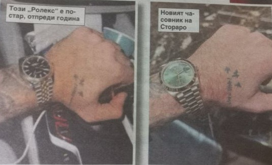 На ръката на сина на Тони Стораро блести „Ролекс" Day-Date. Не просто някакъв обикновен часовник, а луксозно произведение на майсторски занаят, изработено от розово злато, златен корпус, характерна „Президент“ гривна зелен циферблат, който придава строго, но едновременно с това и стилно излъчване. Часовник, който говори сам за себе си - за вкус и социален статут. И цената не е за пренебрегване: модели като този, според пазара, струват десетки хиляди евро – солидна инвестиция, която едва ли е предназначена за всекидневно носене по улиците.