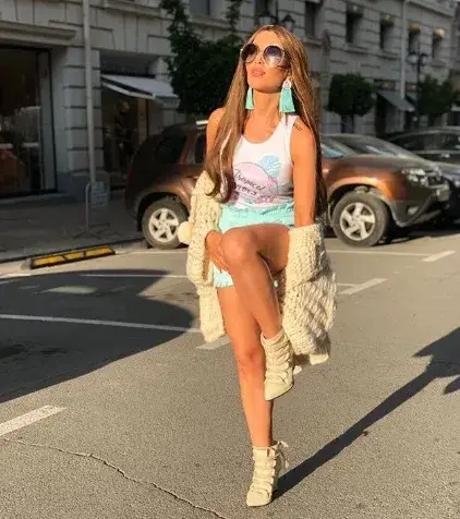 С елек от едра плетка Енджи Касабие се фръцка в столицата въпреки жегата, узна HotArena.