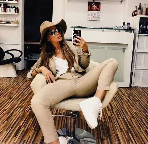 Изпълнителката на разни хитове, която е и успешен дизайнер, придружава крилатата фраза с поредно яко селфи. На снимката Есил е с шапка, слънчеви очила и бежов костюм с бели кецове, но позата е важна, писа „България Днес“.