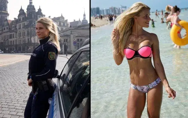 Изкусителката е стражар в Дрезден и се радва на огромни симпатии не само сред апашите, но и сред колегите. 33-годишното маце има десетки хиляди последователи в социалните мрежи, а хобито й е да обикаля по екзотични дестинации, където се снима по оскъдно облекло.