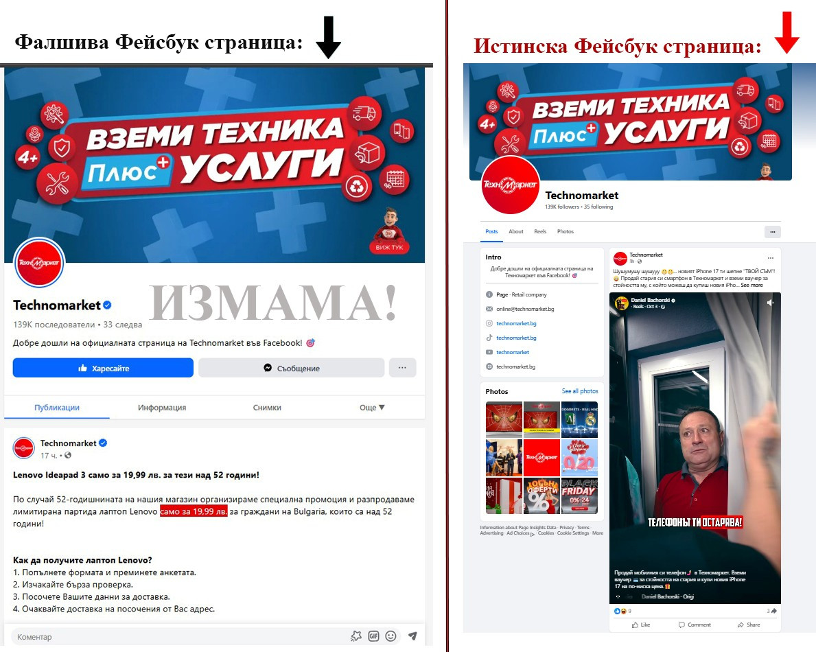 Снимките, които изобилстват на фалшивата страница, са крадени от истинските канали на Техномаркет, което прави ситуацията още по-опасна за любителите на електроника. Внимание! Не се доверявайте на подозрителни линкове!