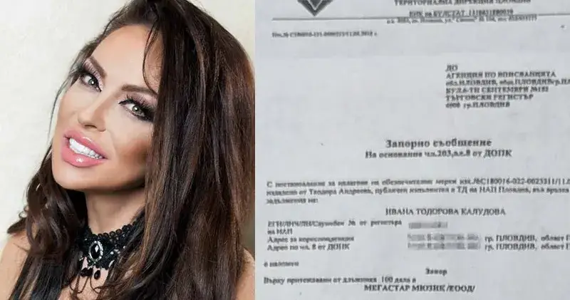 Още през пролетта певицата е получила от пловдивските данъчни запорно съобщение върху музикалната компания, чрез която осчетоводява сценичните си ангажименти – „Мегастар мюзик“ ЕООД. Публичният изпълнител на ТД на НАП Пловдив Теодора Андреева пише на певицата, че на основание чл. 203, ал. 8 от ДОПК издава постановление за налагане на обезпечителни мерки във връзка с публични задължения, На изпълнителката е наложен запор върху притежаваните от длъжника 100 дяла в „Мегастар мюзик“ на 5000 лева.