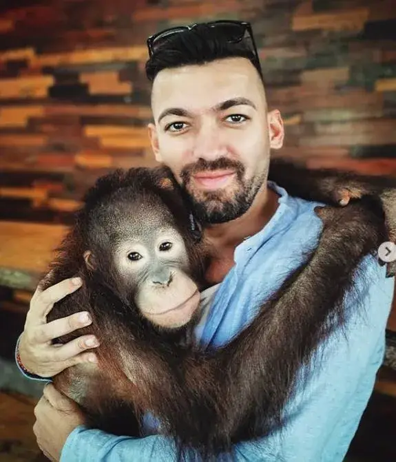 Дамян си пусна снимка с примат, с който са гушнати влюбено и се обясняват един на друг. Животинката се е отпуснала на врата на певеца, докато той гледа усмихнат към камерата.