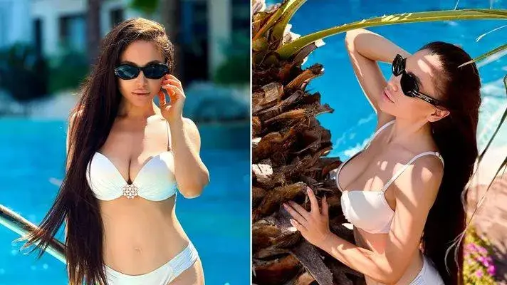 Мегапищен бюст извади на публичен показ фолкаджийката Яница. Чалга дивата почива на екзотична дестинация с палми и яркосини води, пише България Днес.