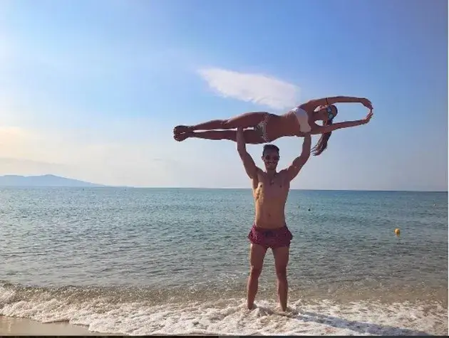 Актьорът, който вече е дипломиран доктор, показа как тренира, когато не е в залата. Изваяната му приятелка му помага в ежедневните занимания за поддържане на перфектна форма. \"Тренировка с подръчни средства\" - така се шегува Наум.