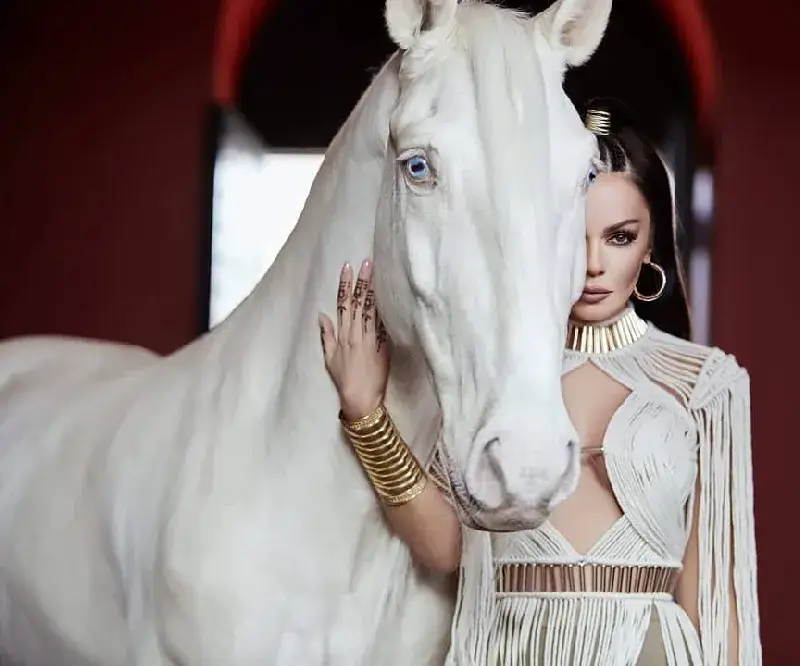 Изпълнителката обязди четириногото за снимките на последния си клип. Конят е от редкия вид албинос, със сини очи, пише „България днес”.