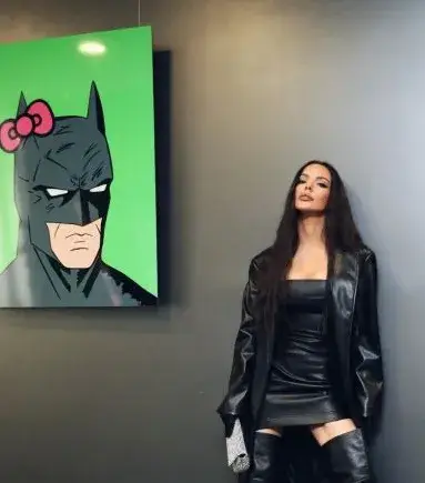 Певицата бе изцяло в черни кожени дрехи, като Жената котка, за да е в унисон с картините на Борче Батман, пише Телеграф.