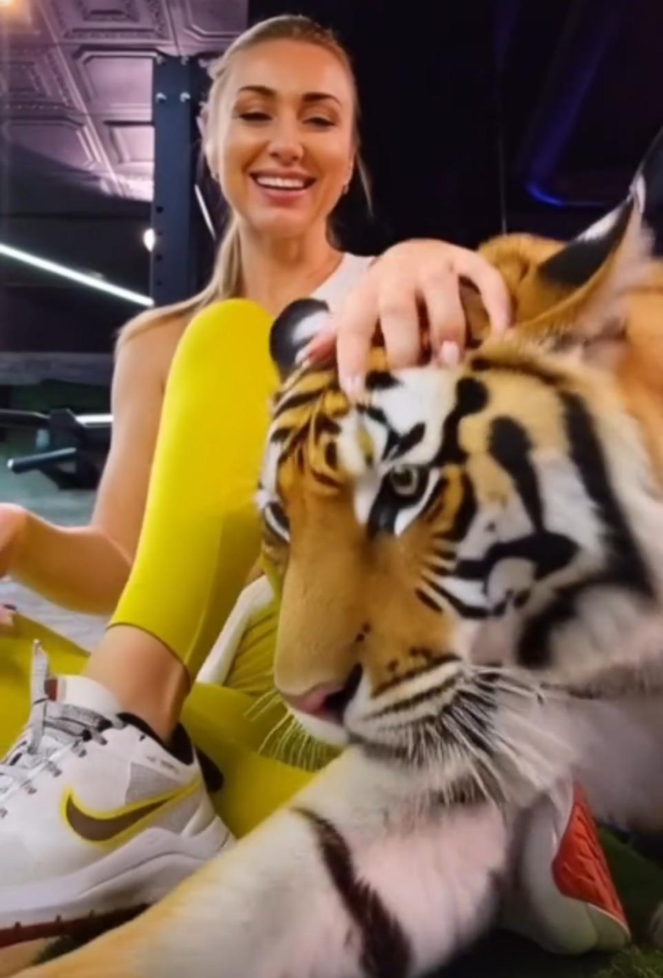 В клипчето, което бързо стана вирусно, Галя се е настанила удобно в спортен екип, докато тигърът нежно полага глава в скута й. Тя не само че не се страхува, но и с влюбена усмивка гали тигъра по главата, сякаш той е просто домашен любимец. „Дивото зове“, каза тя, явно на шега, но все пак е доста смело от нейна страна!