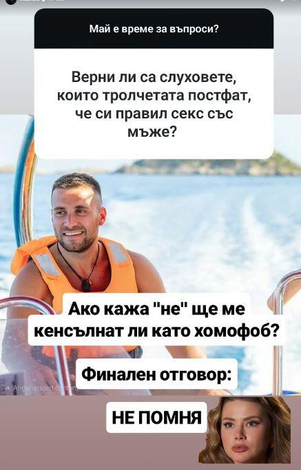 Кофтито обаче е начинът, по който Виктор показва кой командва в отношенията им и „шамара“, който й зашлеви публично преди часове. В мрежата нарцисът Виктор отговаряше на въпроси, когато изведнъж го попитаха дали е пробвал секс с мъж. Той се хвалеше с черно тефтерче и цели 106 бройки жени до момента, та хората се поинтересуваха дали няма опит и на другия бряг...