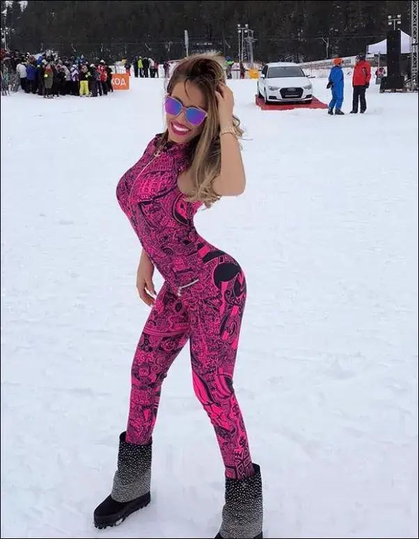 Яркото цикламено екипче не скрива абсолютно нищо от пищните извивки на изкусителката, пише „България днес”. Освен това се забелязва отдалеч и я превръща в истинска атракция.